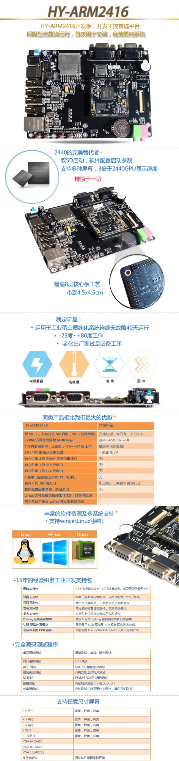支持SD卡啟動, 支持linux, WINCE 雙系統(tǒng). 隨機贈送全部開發(fā)資料及源碼.上手及其容易, 將近8年的資料,讓您足不出戶, 學會,及熟練應(yīng)用ARM板相關(guān)技術(shù)開發(fā).大家可能對2416有點陌生, 因為此前接觸的都是ARM2440A, 2416是2440A的升級產(chǎn)品.對2440系列作了很多改進.